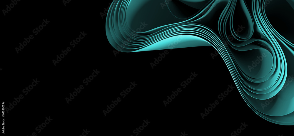 Curvy paper structure in mint green, isolated on black #1093890796
