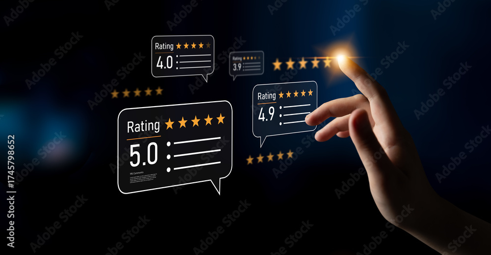 Customer centric review and rating system supports product review, digital rating concept, and customer give good trust by visualizing people choice through stars and feedback content technology Latch #1745798652