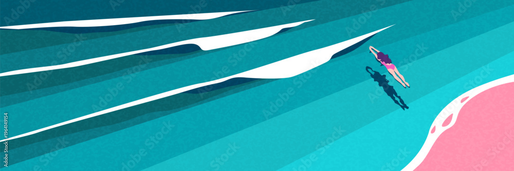 Cute pastel summer banner collection featuring ocean, train and coastal landscape. #1964149154