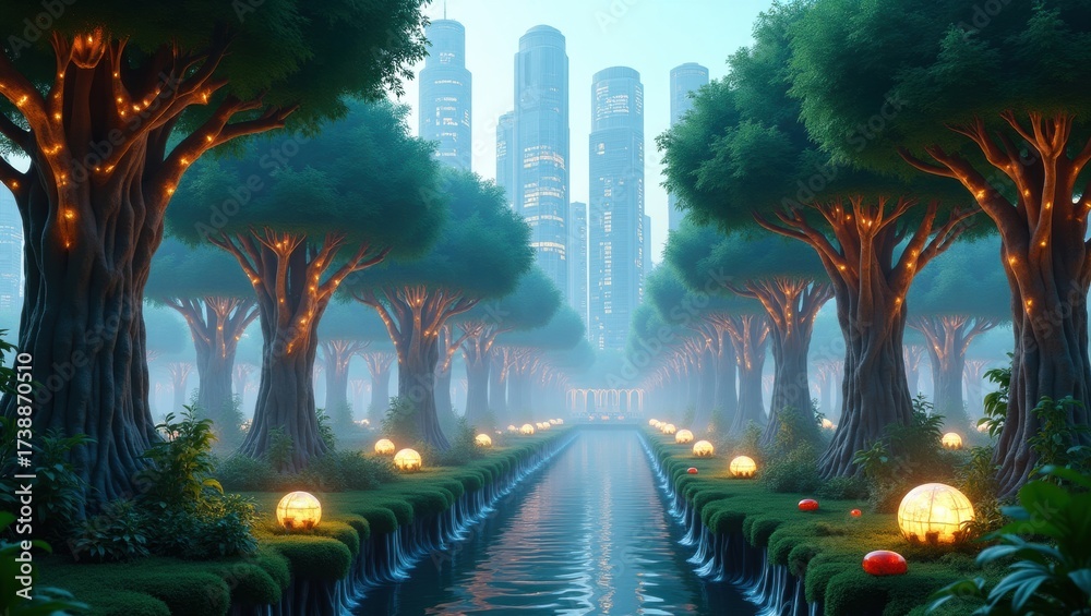 Cybernetic forest park—algorithmically designed trees, AI-managed wildlife, and self-learning environmental conditions #1738870510