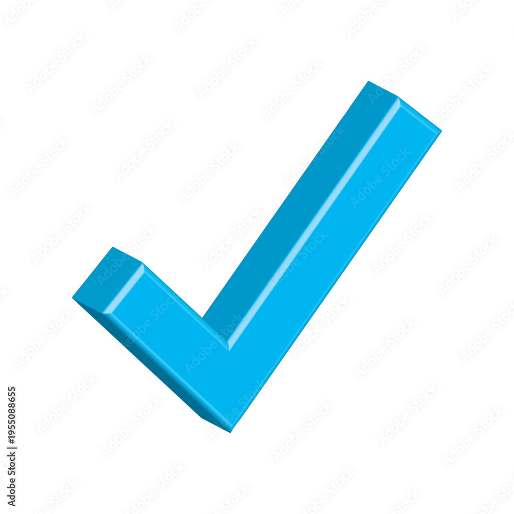 3D Blue Check Mark Icon. Isometric Tick for Approval, Success, and Completion. Verification Sign for Business Checklist, UI Design, and Web Apps. Isolated 3D Rendering of Correct Choice and Yes Symbol #1955088655