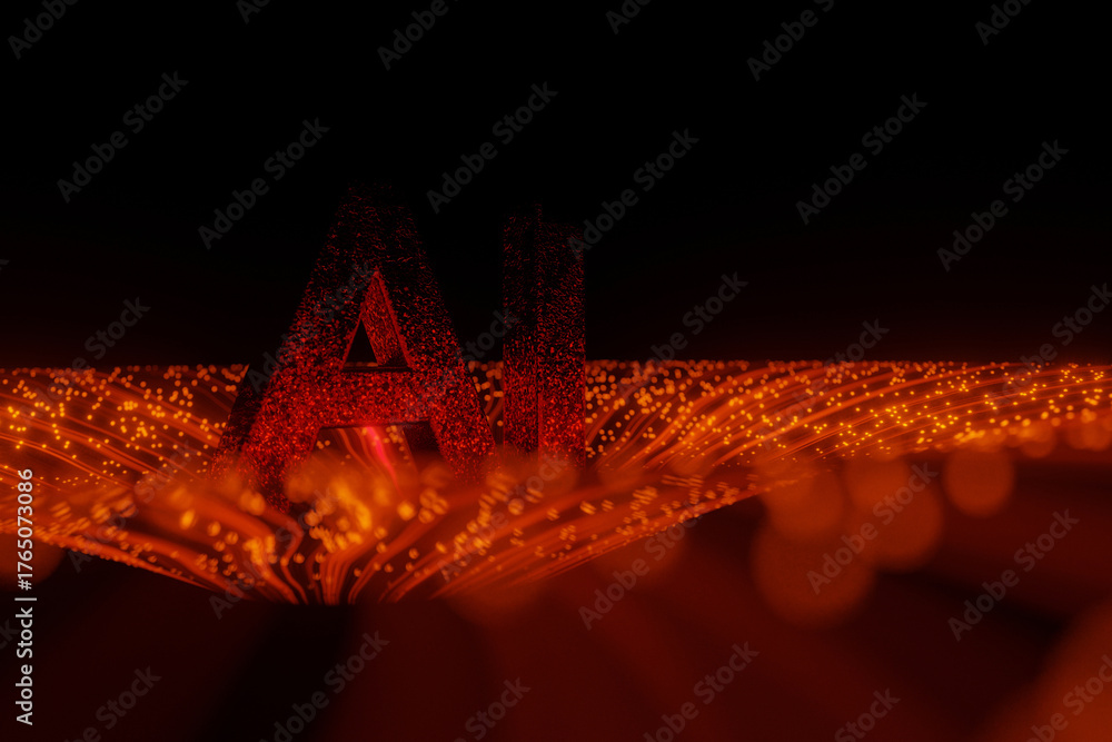 3D illustration of glowing red letters “AI” surrounded by dynamic digital light lines, symbolizing artificial intelligence, technology, innovation, and futuristic data network concepts. #1765073086