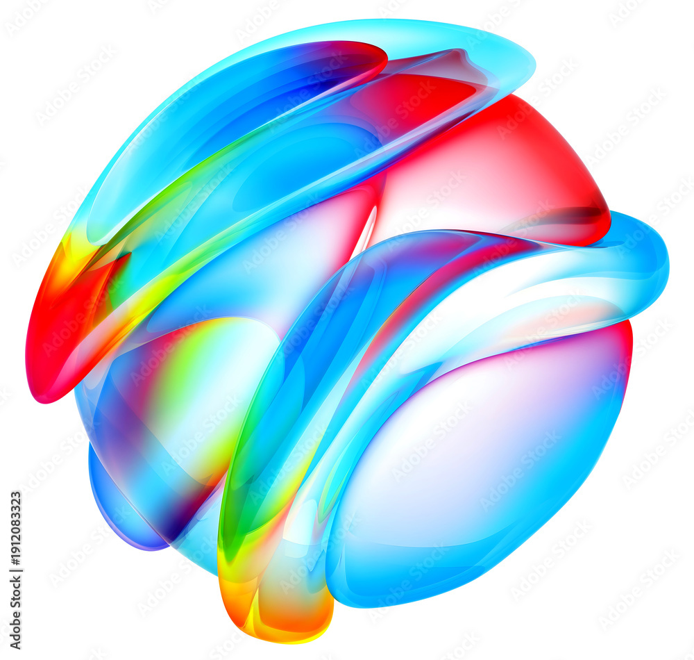 3d render of abstract art with surreal alien ball sphere flower in curved wavy organic biological lines forms in fluorescent green purple and blue gradient color on white background #1912083323