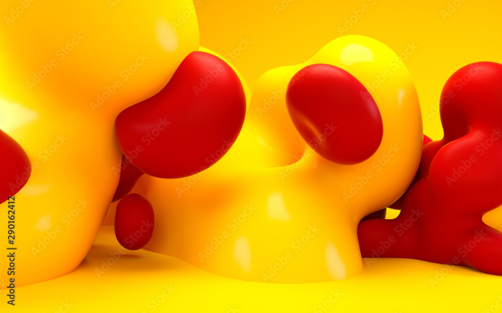 3d rendering illustration. Abstract smooth liquid art. Horizontal background design for web site and graphic design projects. Balls and bubbles. Happy summer party mood. #290162412