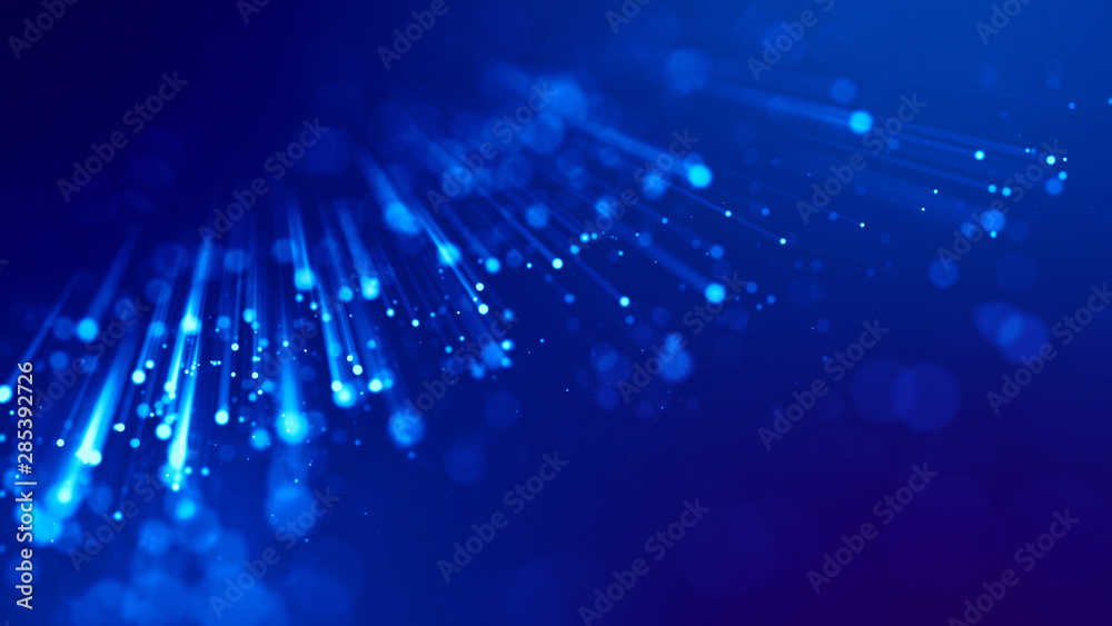 3d rendering of abstract blue background with glowing particles like micro world science fiction with depth of field and bokeh. Blue light rays like laser show for bright festive presentation #285392726