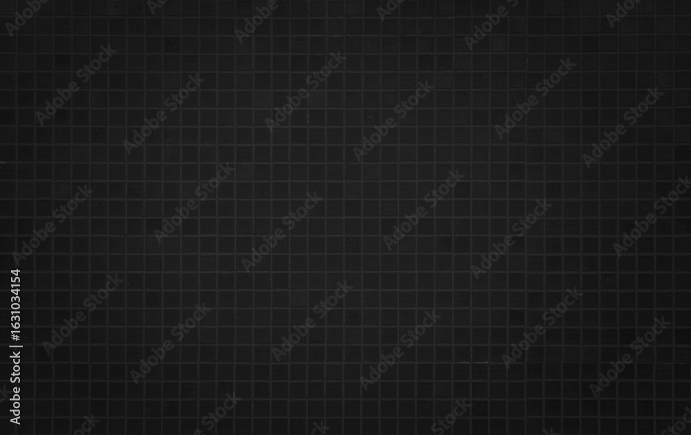 Dark black ceramic wall chequered and floor tiles mosaic background in bathroom. Design pattern geometric with grid wallpaper texture decoration pool. Simple seamless abstract surface grunge. #1631034154