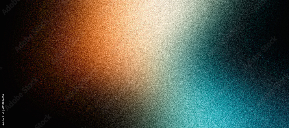 Dark grainy background, teal orange blue black color gradient, abstract glowing blurred shape, noise texture header, banner, poster, backdrop, cover or wallpaper design #1952824090