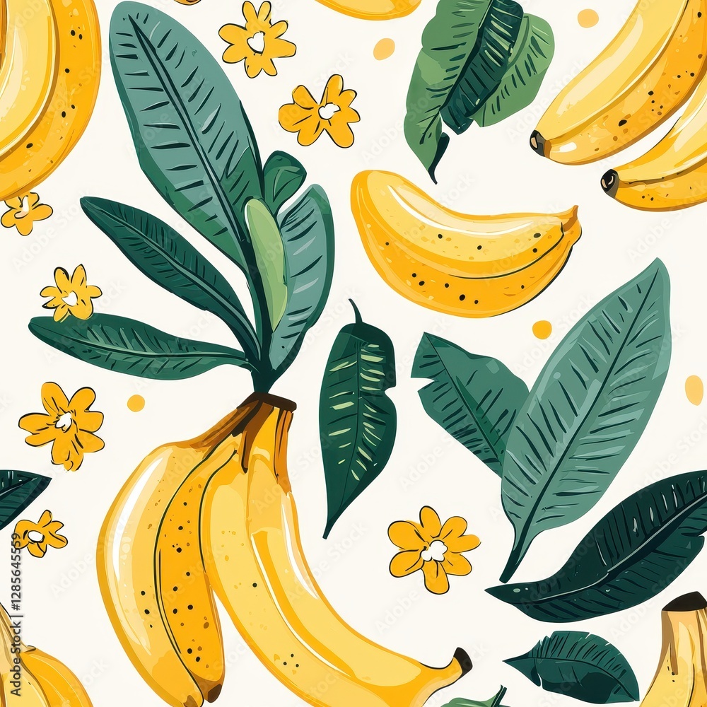 Delicious arrangement of bananas surrounded by lush green leaves creating a fresh and inviting tropical scene inspired by nature's bounty #1285645559