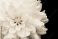 Details of blooming white dahlia fresh flower macro photography. Light sepia monochromatic photo emphasizing texture, contrast and intricate floral patterns isolated in a dark black background. #280481188