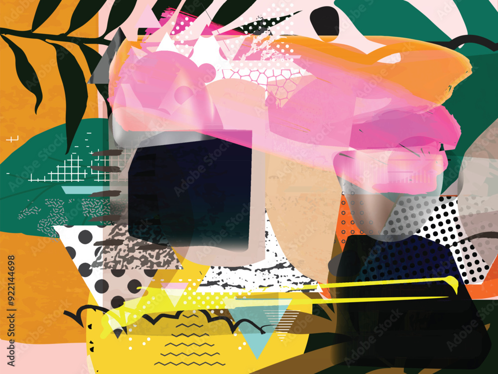 Different textures and shapes artistic vector illustration collage. Geometric abstract design, creative background for banner, brochure, card, invitation, flyer, placard, poster, report, artwork #922144698