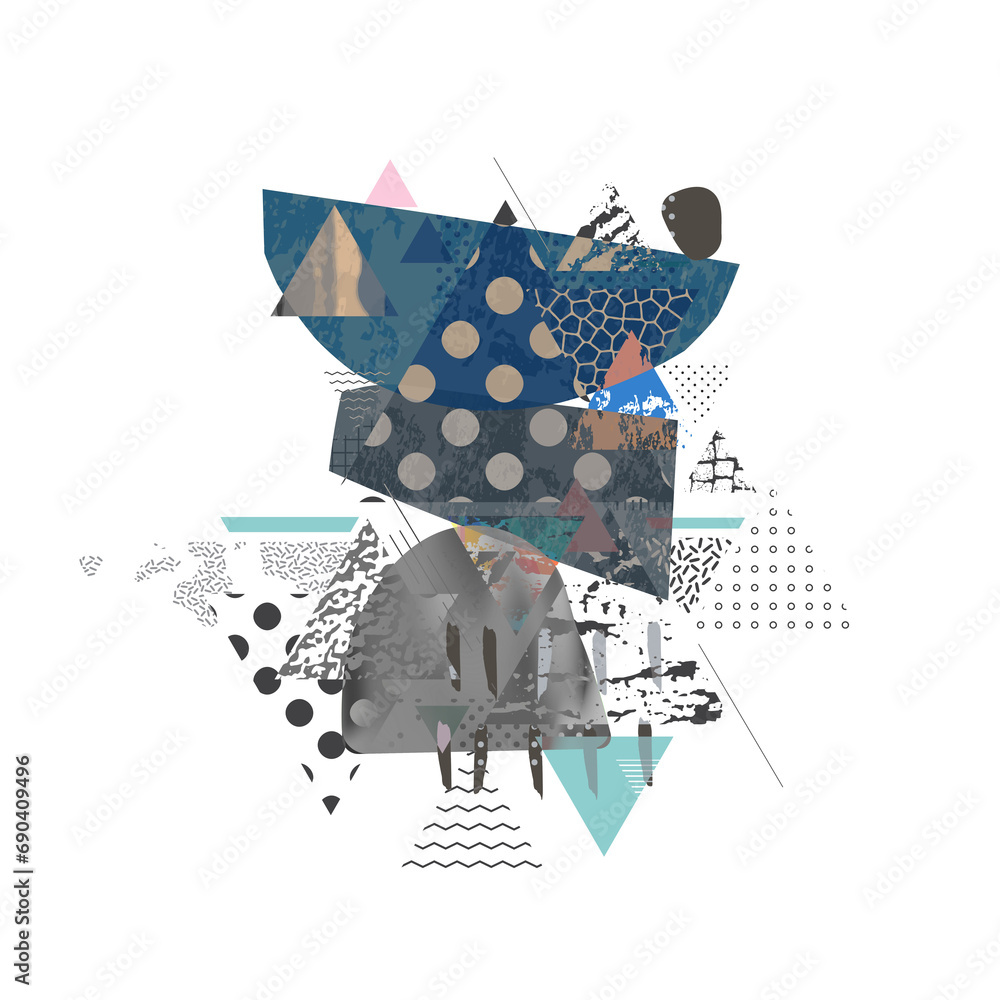 Different textures and shapes artistic vector illustration collage set. Geometric abstract design, creative background for banner, brochure, card, invitation, flyer, placard, poster, report, artwork #690409496