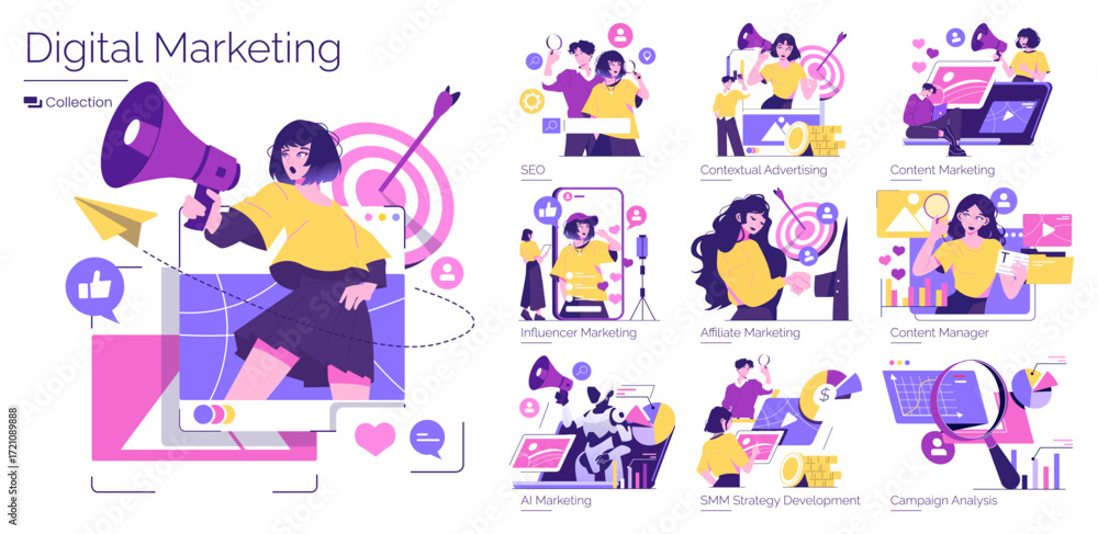 Digital Marketing Vector Illustrations with Various Concepts #1721089888