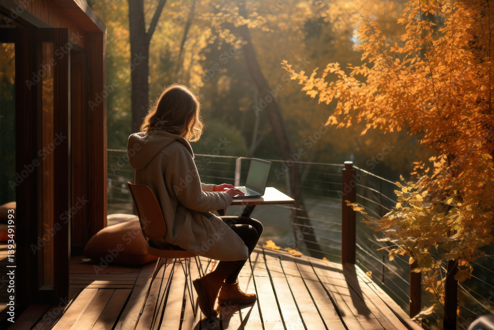 Digital nomad lifestyle. Woman working on a laptop while traveling. Career and personal life. Finding a healthy balance between work and personal life #1393491993