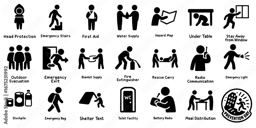 防災アイコン集(避難・応急・備蓄)、Disaster Preparedness Icon Collection #1675231992