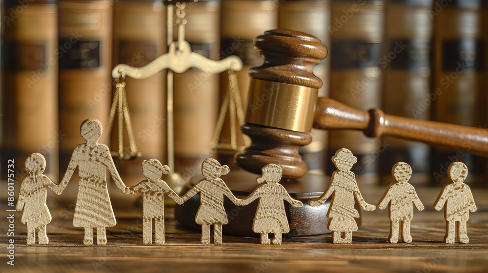 Divorce proceedings in court, where a judge's gavel separates a family. #860175732