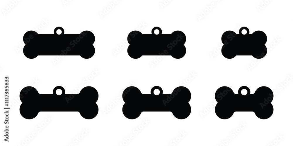 Dog bone tag icons, dog collar tag vector illustration #1117365633