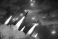Dramatic night scene of a massive ballistic missile strike. Multiple rockets ascending through thick smoke and fire into a glowing orange sky. Concept of Middle East conflict, war, and escalation. #1932917695