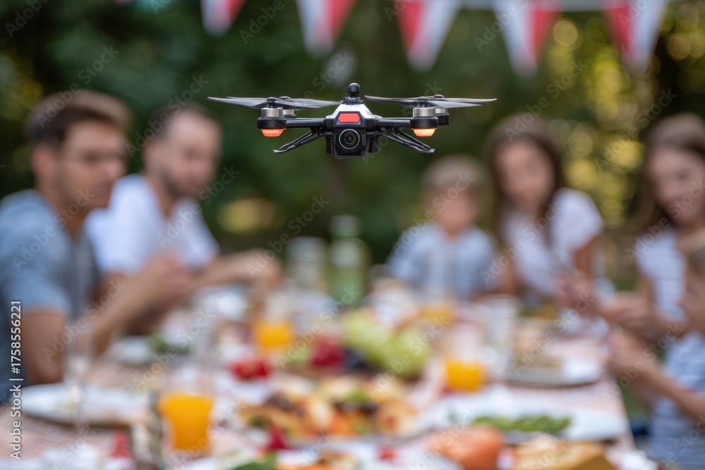 Drone Capturing Family Gathering Outdoors with Vibrant Summer Vibes. #1758556221