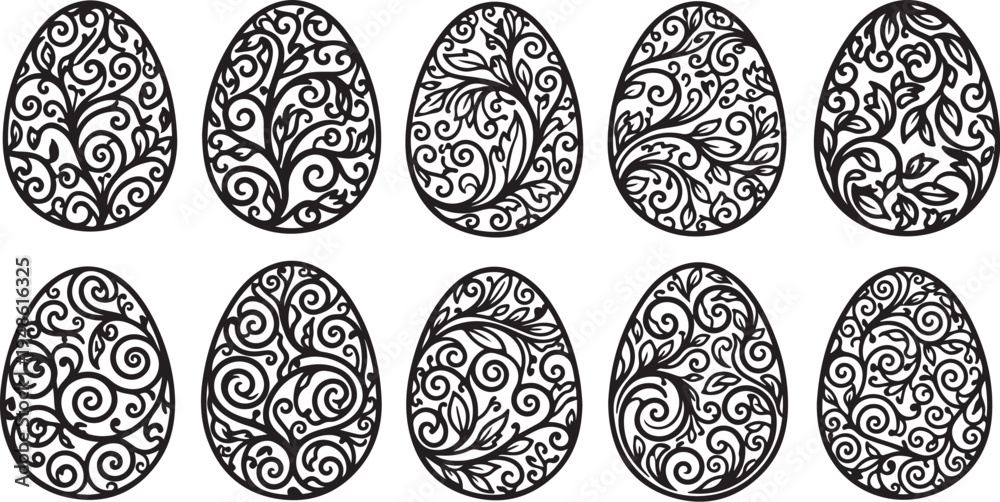 Easter eggs with intricate floral patterns and swirls design #1948616325