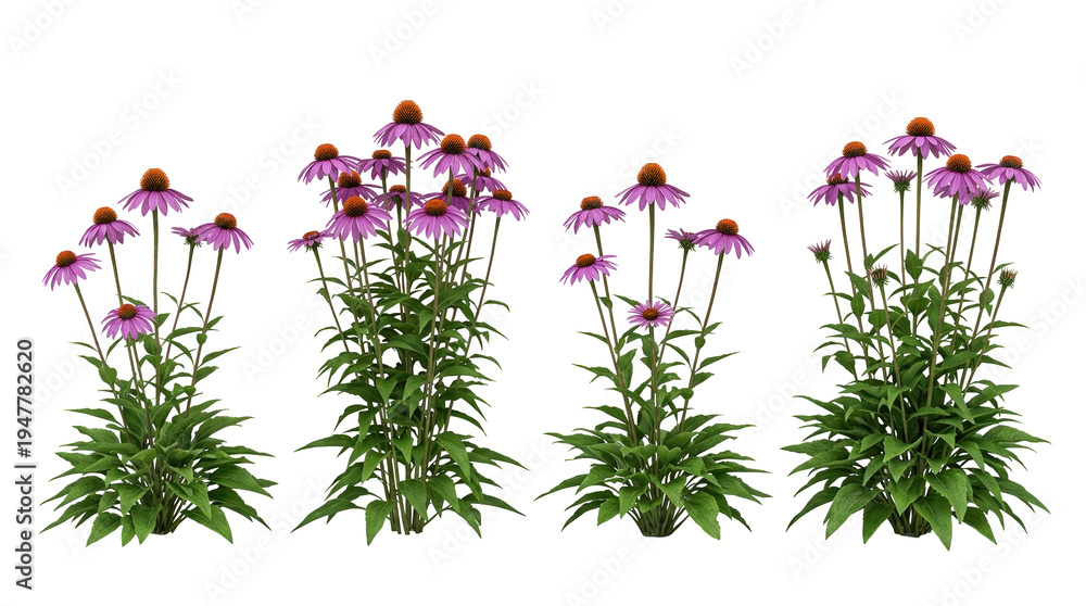 echinacea purpurea, purple coneflower, isolated, garden flowers, medicinal plant, herbal remedy, perennial vibrant clumps on black background for botany and wellness design. #1947782620