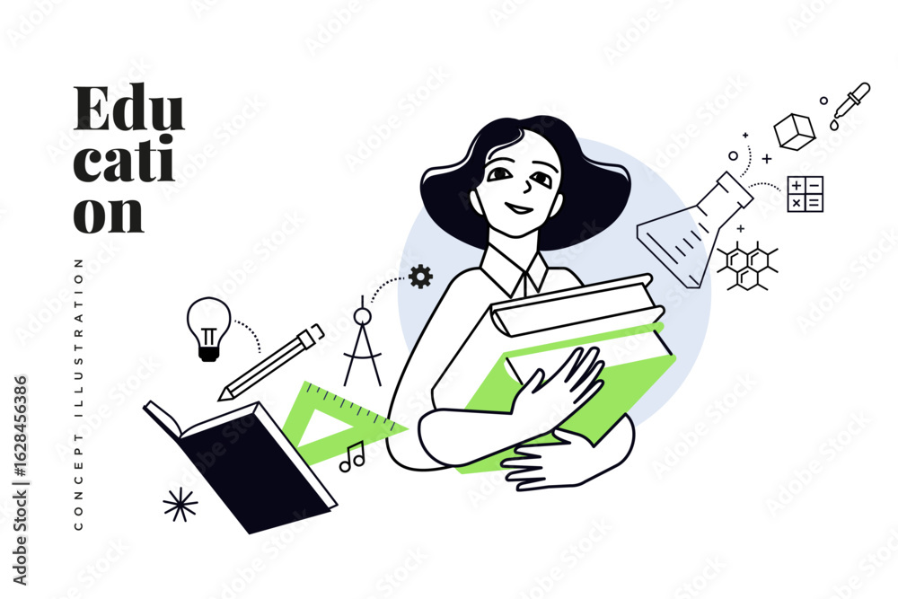 Education. Creative vector illustration for web banner, social media, business presentation, marketing material. Back to school. Distance education, online learning. #1628456386