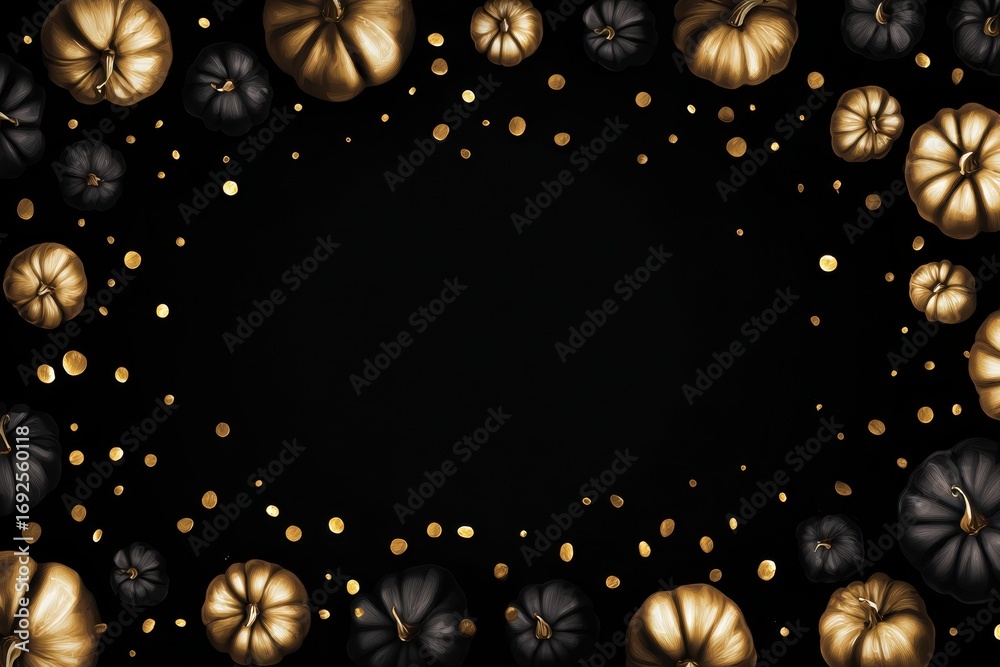 Elegant Halloween Black and Gold Pumpkins with Golden Confetti Border. #1692560118