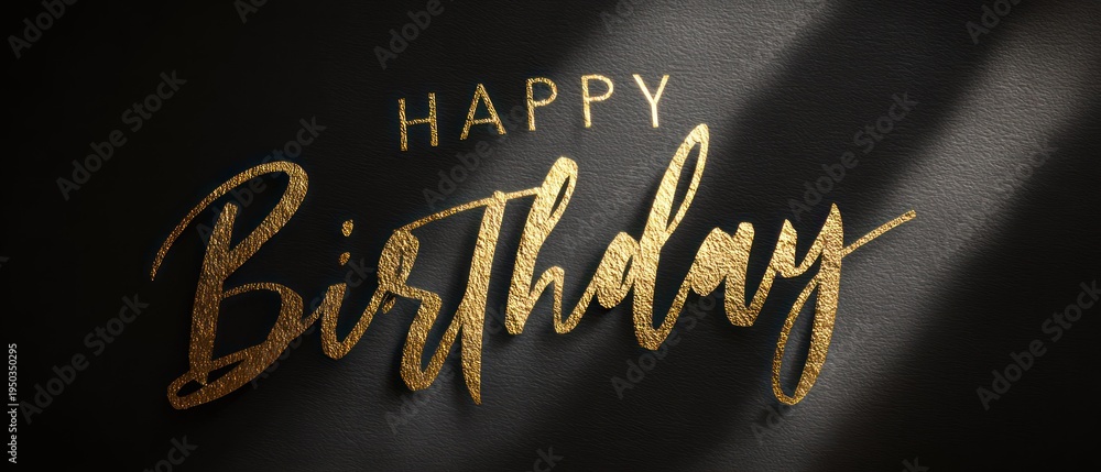 Elegant happy birthday greeting with gold lettering on black background #1950350295