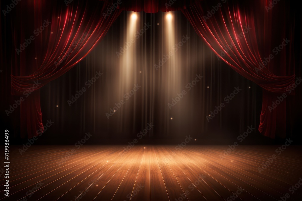 Empty theater stage with red curtains. 3d illustration #719936499