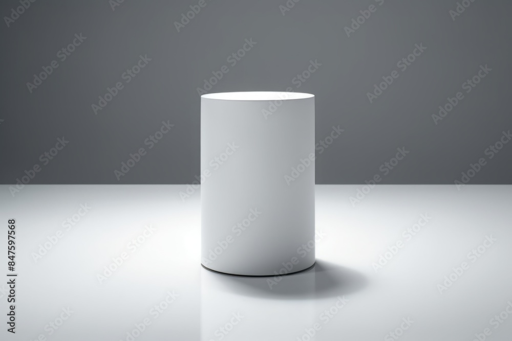 Empty white circle podium mockup with shadow effect, empty round pedestal for display, white ellipse cylinder podium for product presentation isolated on white background. #847597568