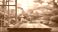 empty wooden table top with soft blurred japanese window and green garden view offering natural daylight background perfect for product presentation or interior design template in minimal #1657358298