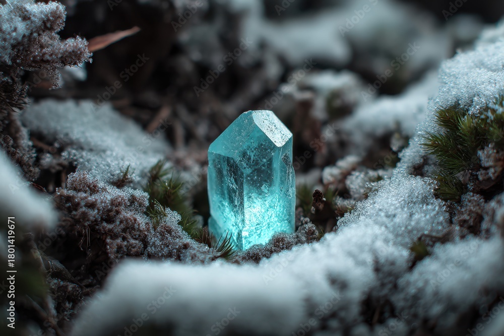 Enchanting Blue Crystal Amidst Icy Forest Landscape Captured in Stunning Detail. #1801419671