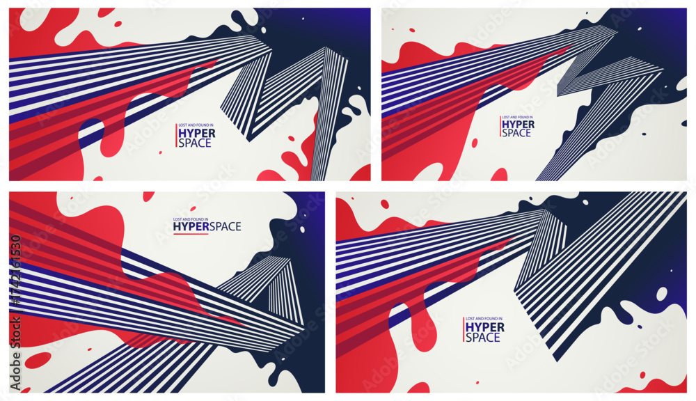 Energy theme vector abstract background set, fluid splash over lines in 3D perspective, explosion blast of surreal lava wallpaper art, dynamic motion in chaos. #1742161530