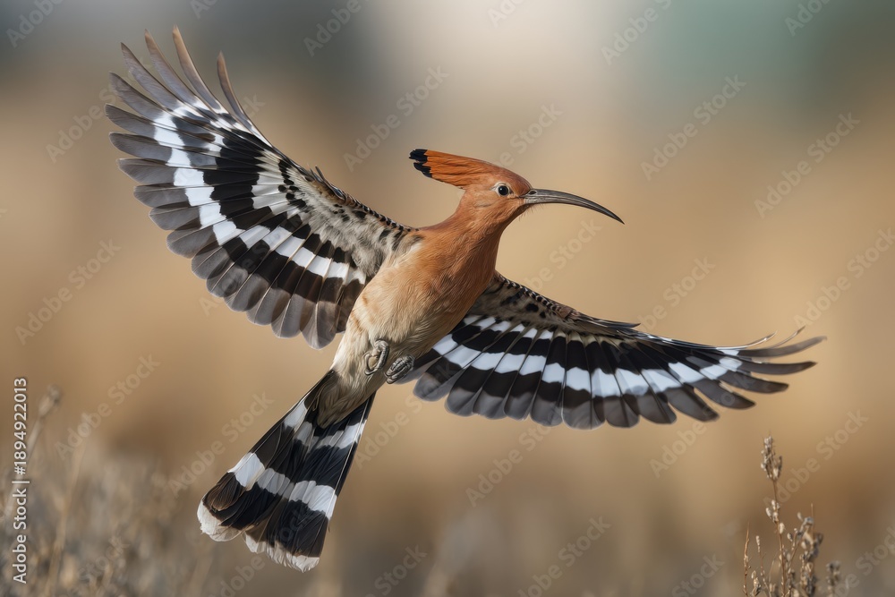 Eurasian hoopoe flying with wings wide open. #1894922013