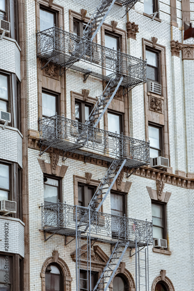 Facades of apartments, with fire stairs. Soho, Manhattan. NYC #281990372