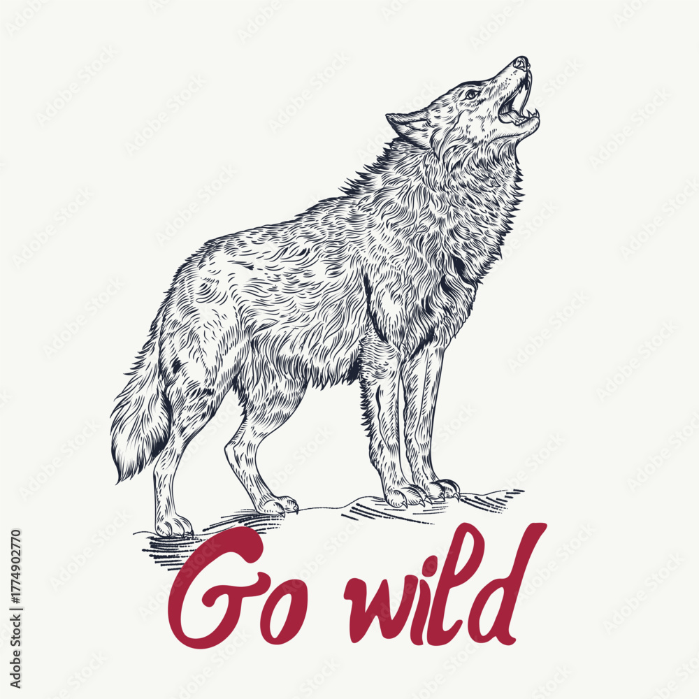 Fashion apparel vector print hand drawn wolf, wild camping tourism #1774902770