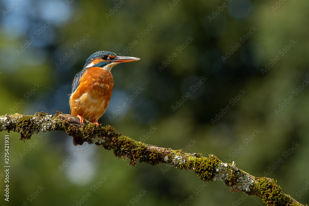 Female Common Kingfisher perched on a branch with a blue and green bokeh background. #275421931