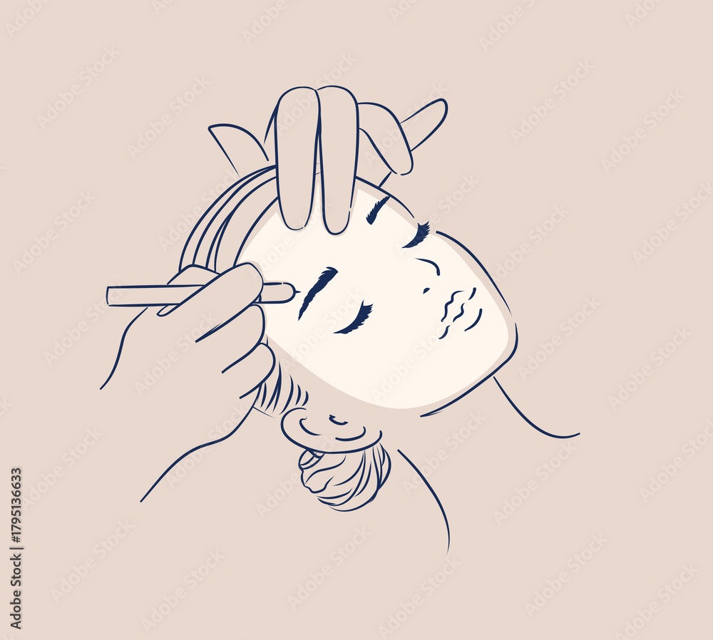 Female face eyebrow beauty procedure drawing in minimalist style on beige background #1795136633