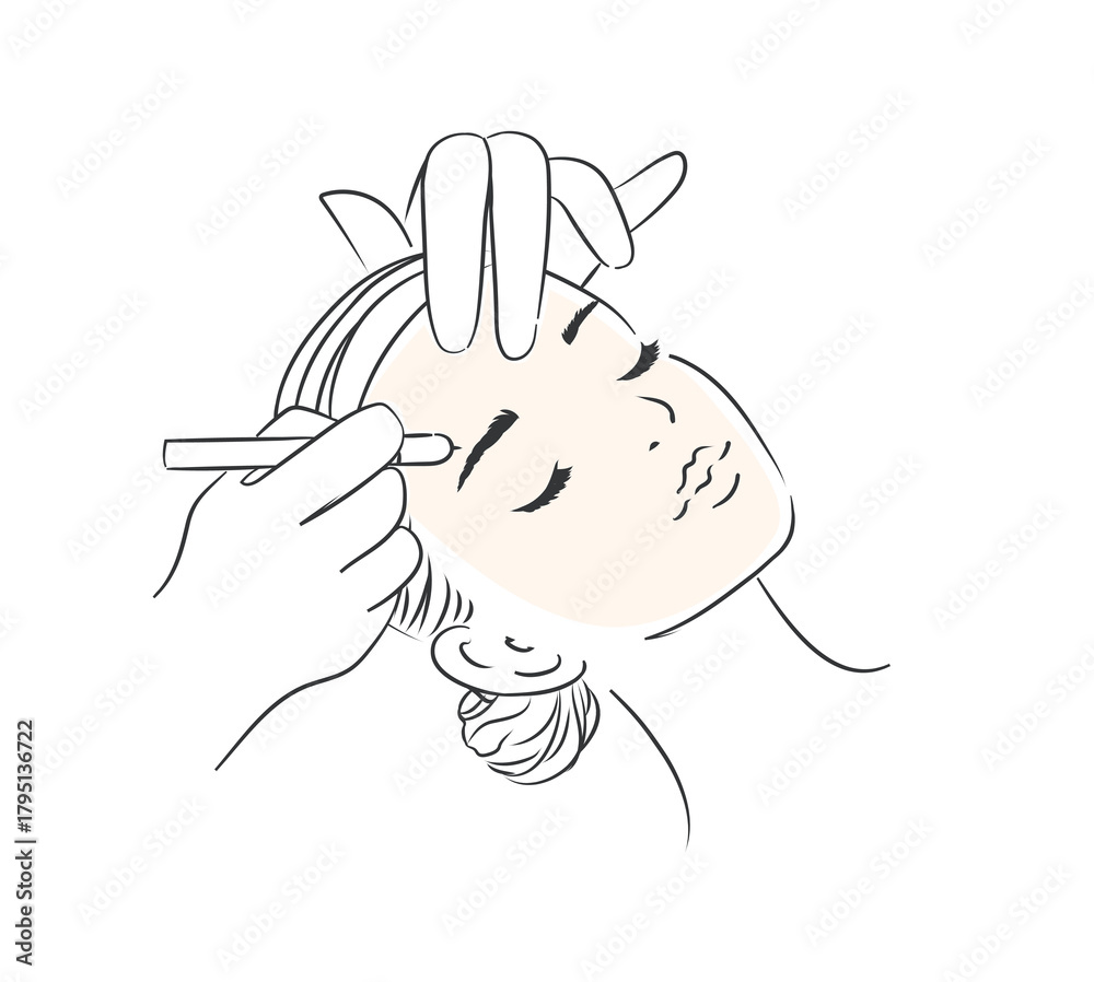 Female face eyebrow beauty procedure drawing in minimalist style on white background #1795136722