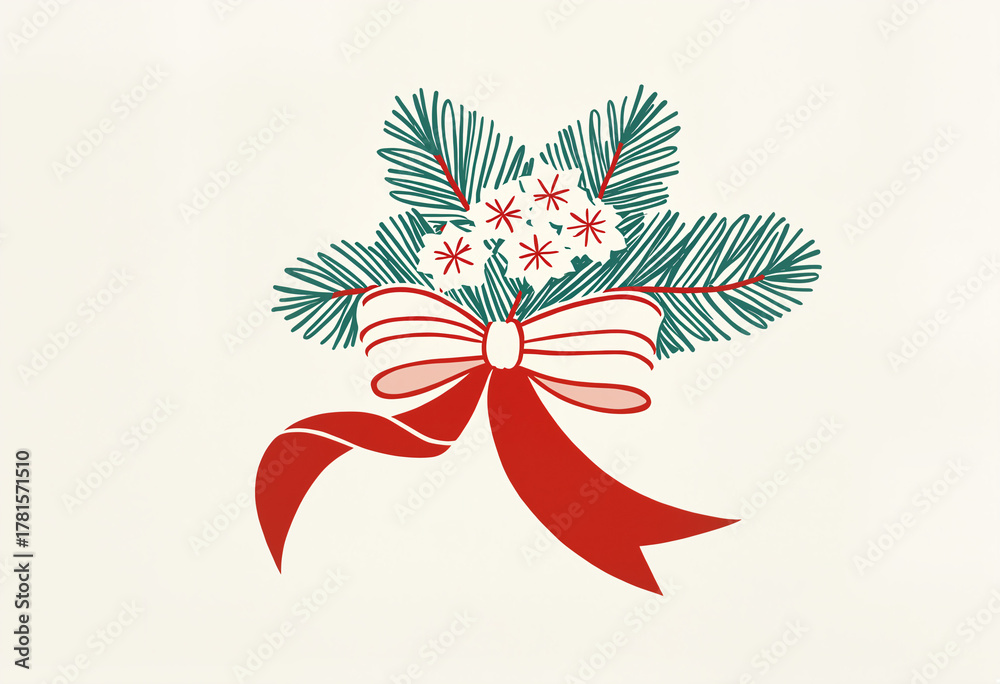 festive christmas spruce branch arrangement with red bow and white flower element #1781571510