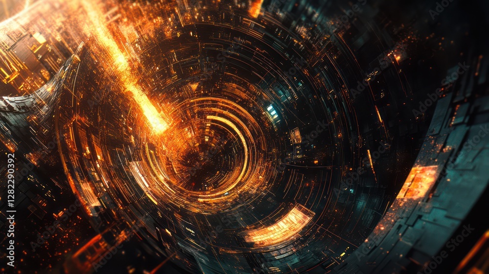 Fiery energy core, futuristic city, burning, abstract background, sci-fi concept art #1282290392