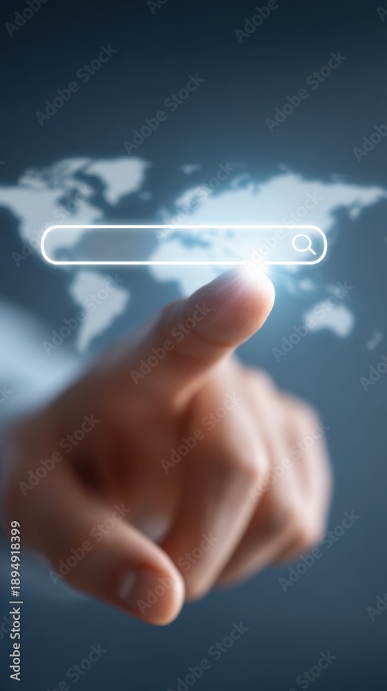 Finger touching search bar on virtual screen. #1894918399