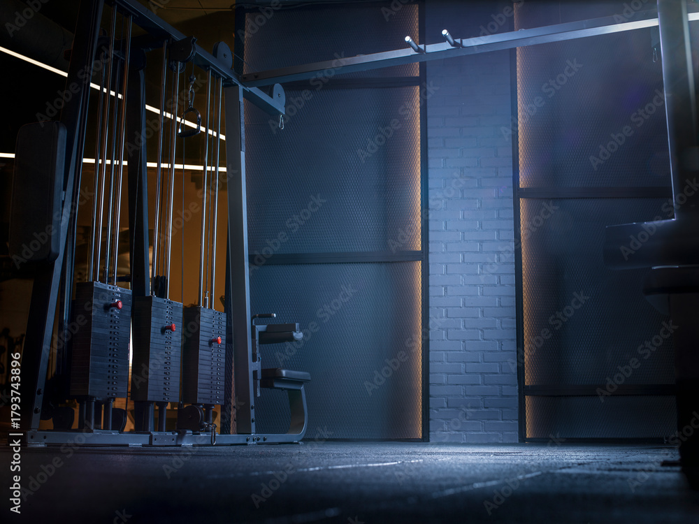 Fitness Gym. A modern fitness studio with neon lighting and high-tech equipment for energetic workouts and activities. Sport #1793743896