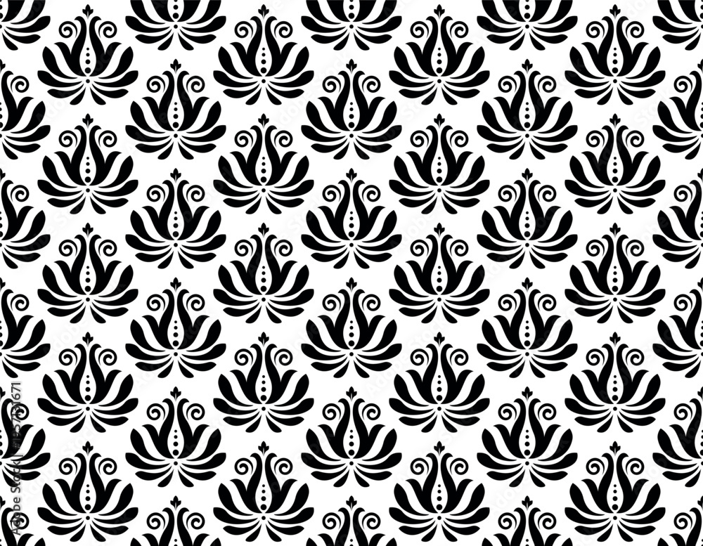 Flower geometric pattern. Seamless vector background. White and black ornament. Ornament for fabric, wallpaper, packaging. Decorative print. #1957131671