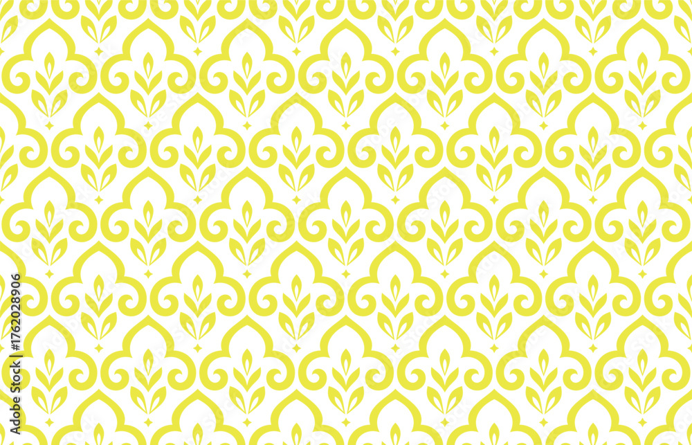 Flower geometric pattern. Seamless vector background. White and yellow ornament #1762028906