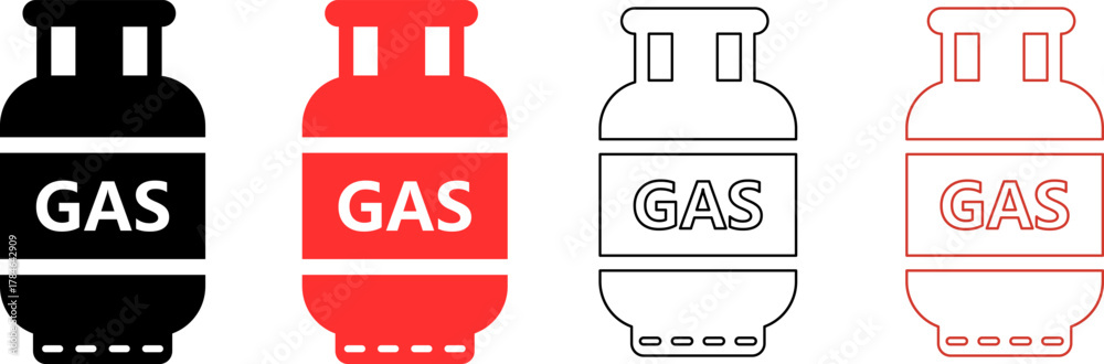 Four stylized gas cylinders in black red and outline styles #1784642909