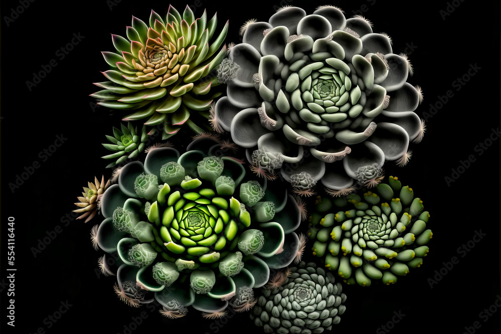 Fractal of succulents and plants, focus stacked, on an isolated black background generative ai #554116440