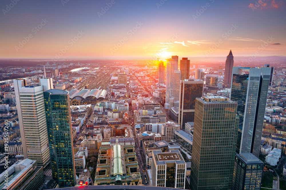 Frankfurt am Main, Germany. Aerial cityscape image of Frankfurt am Main skyline during beautiful sunset. #1920507240