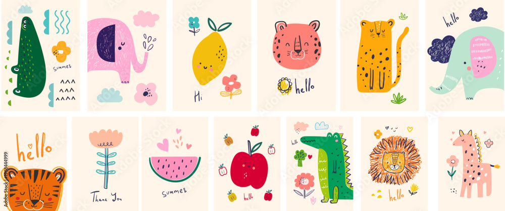 Funny baby prints with cute animals. Kids design. Baby cards and posters #1968444999