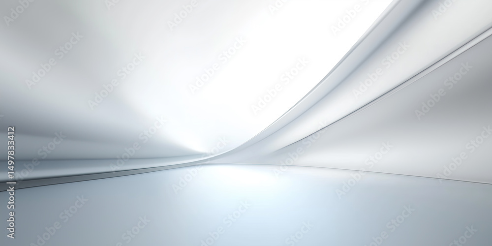 Futuristic abstract background. White and gray tone. Soft smooth of light, abstract shape, curve line, fade color gradient. Nobody empty space in modern room suit for future technology background. #1497833412