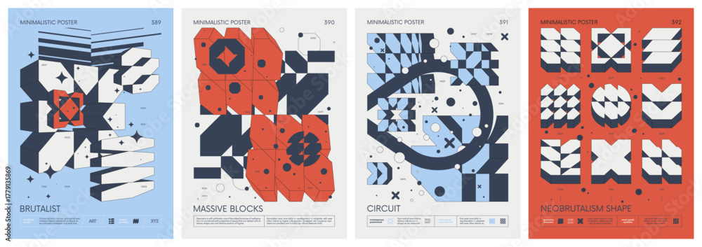 Futuristic abstract graphic wireframe elements of geometric shapes rave composition, Brutalism style vector minimalistic Posters with silhouette postmodern figures, Trendy color print artwork set 98 #1779135869